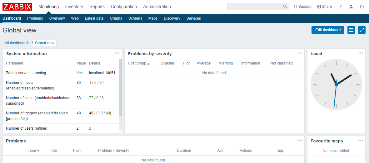 2. 成功登录到 Zabbix 后台