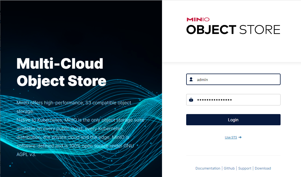MinIO is High Performance Object Storage for AI, used for Object Storage . MinIO is a high-performance, S3 compatible object store. It is built for large scale AI/ML, data lake and database workloads.